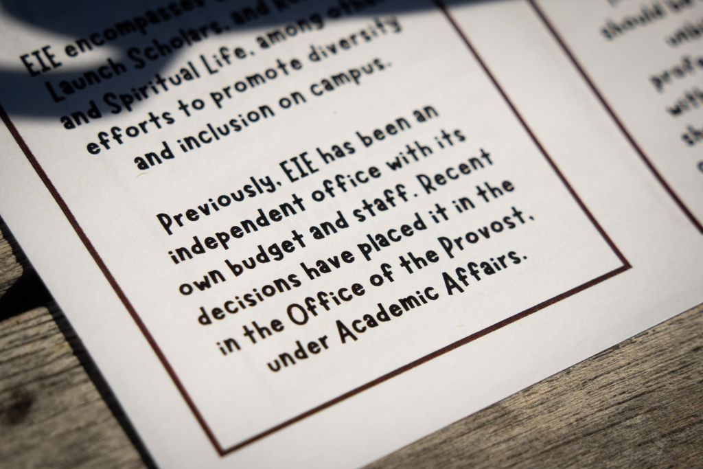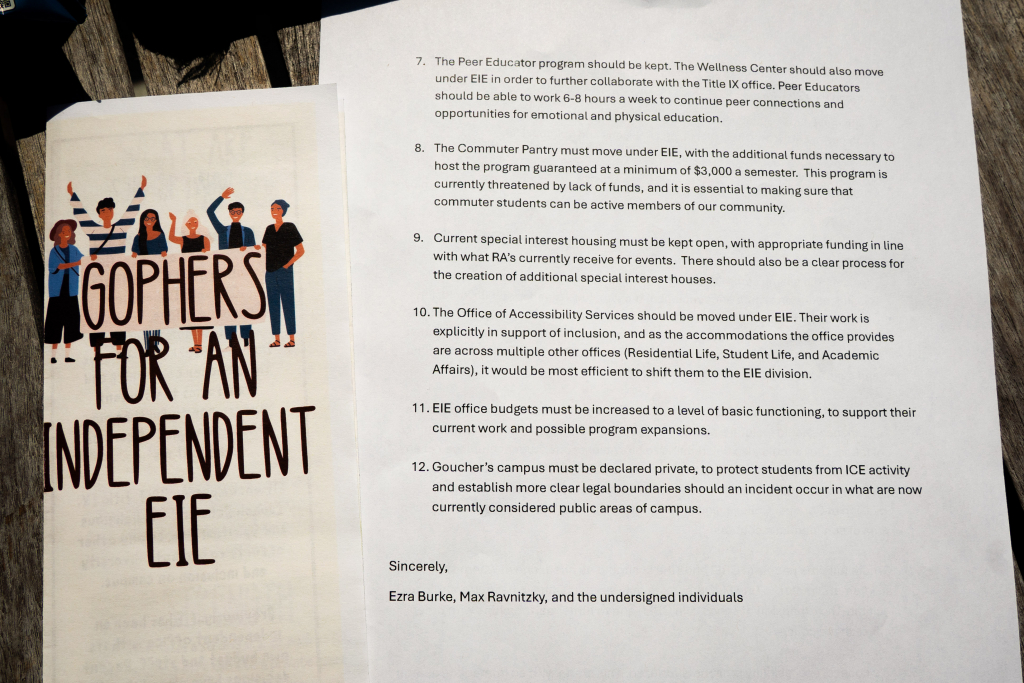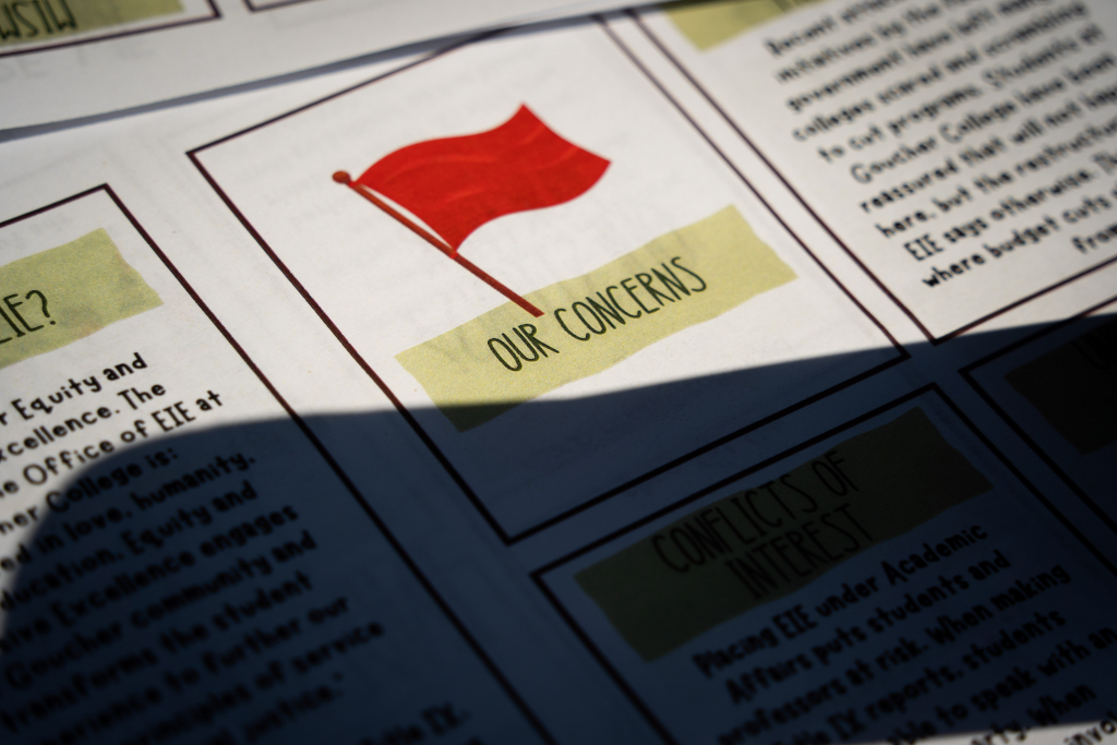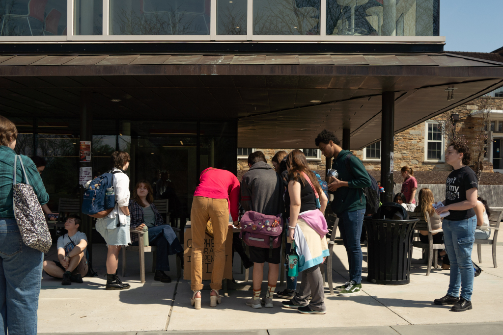 On Thursday, March 26th, students gathered with a petition of demands concerning the changes to the Equity & Inclusive Excellence mission at Goucher following recent budget cuts. Photos By Mich Rouse ’26