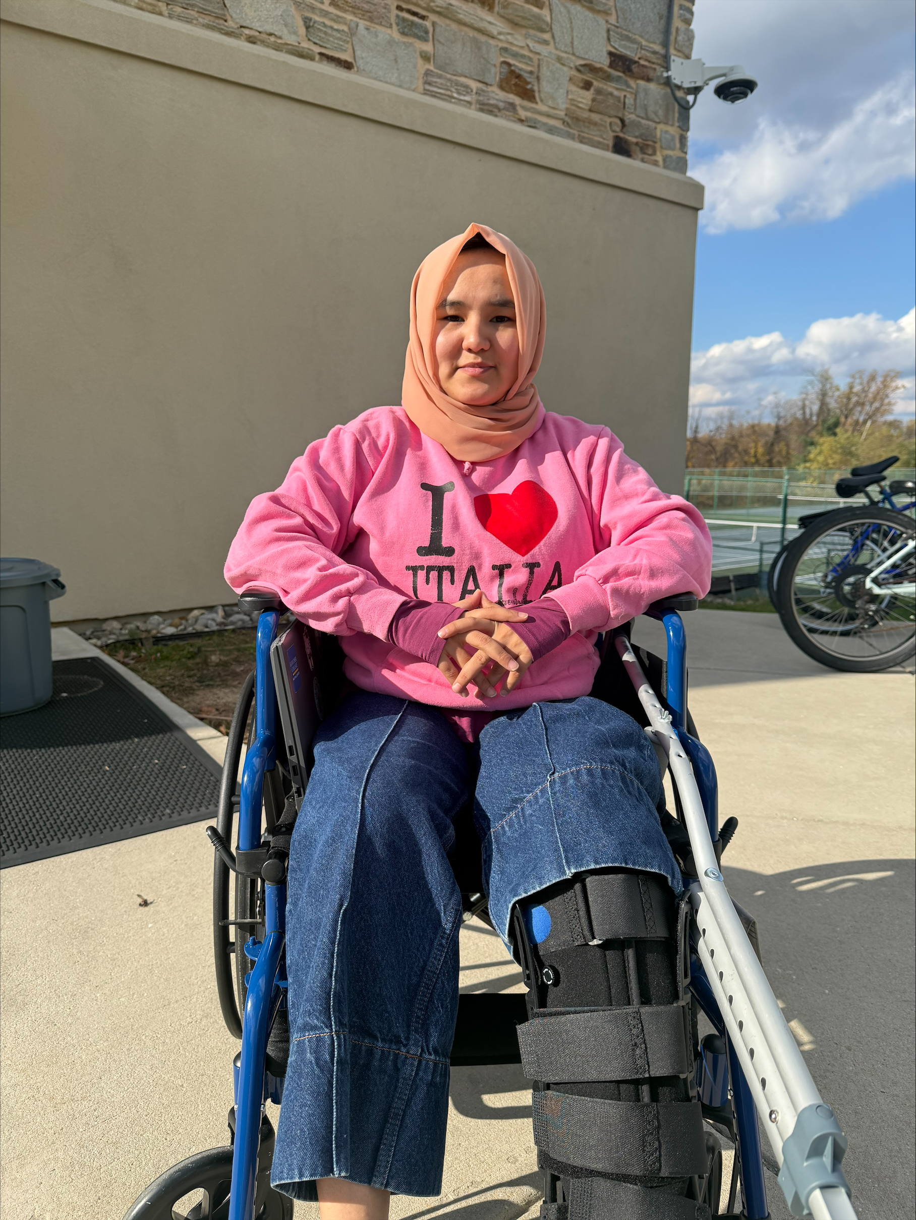 A couple of months went by, and Haseen began to heal from her injury and was no longer reliant on the wheelchair, but occasionally needed crutches when she got tired. She called the Student Health Center requesting another pair because the ones the hospital gave her were too small.